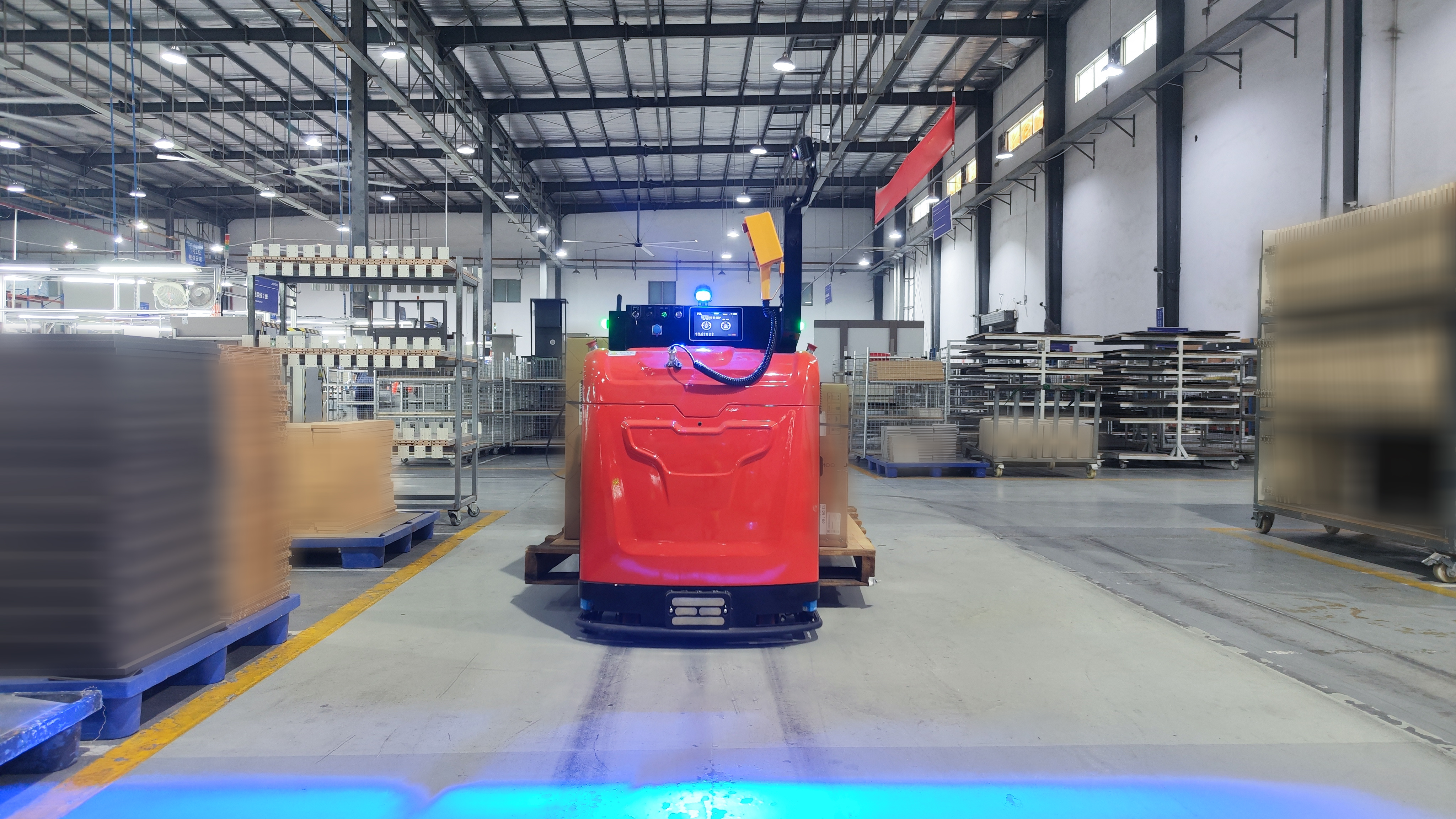 Further Processing: Finished products needing further processing are transported by the VNST20 AGV from the unloading point to the processing area to await further steps.