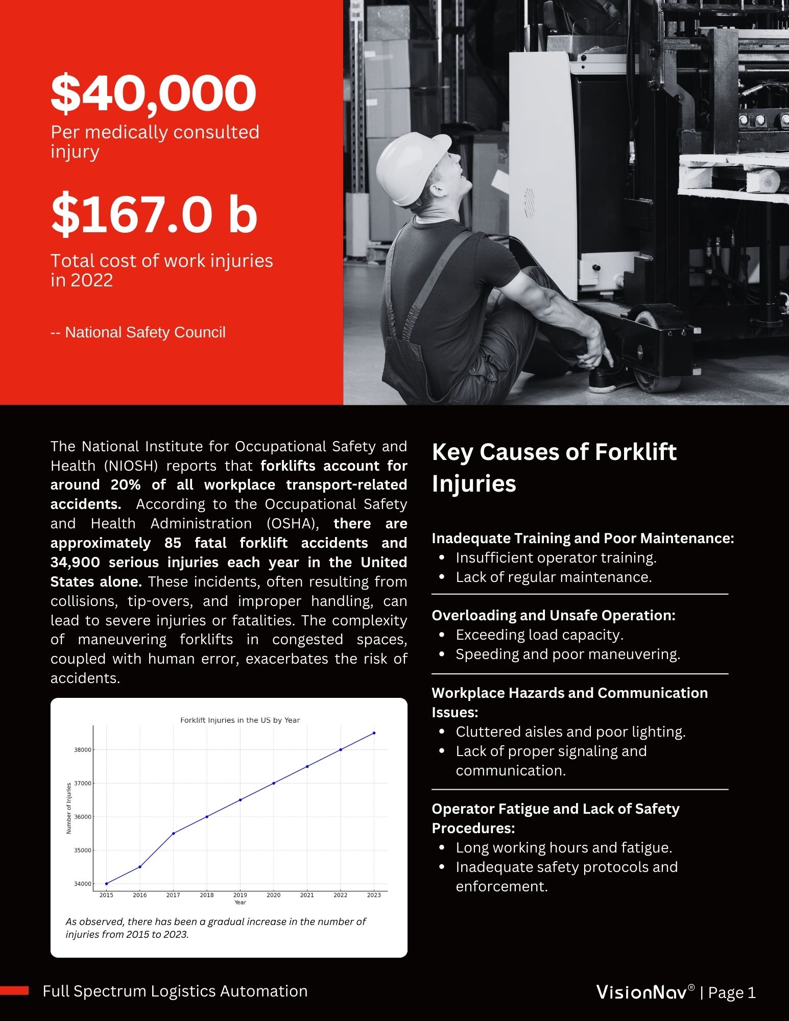 In this comprehensive white paper, VisionNav delves into the critical aspects of ensuring workplace safety through the deployment of autonomous forklifts. The document explores advanced safety protocols and innovative solutions. By leveraging cutting-edge technology and expert insights, VisionNav provides a roadmap for optimizing safety in environments that utilize autonomous forklifts, ensuring both productivity and security.