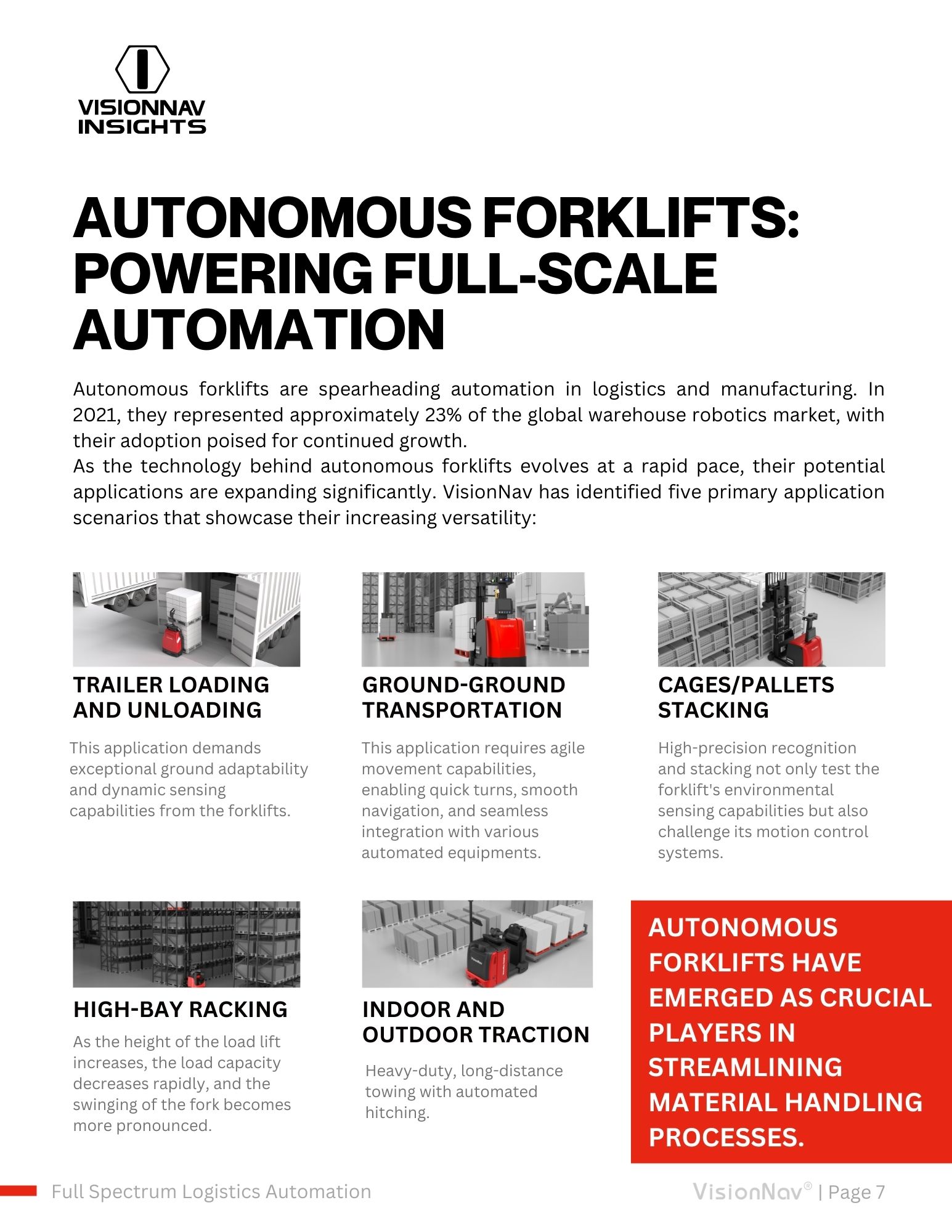 Autonomous forklifts have become key contributors to this growth, playing a vital role in optimizing material handling processes. This paper explores the latest advancements in autonomous forklift technology, highlighting the rising importance of warehousing robots and their widespread adoption across industries.